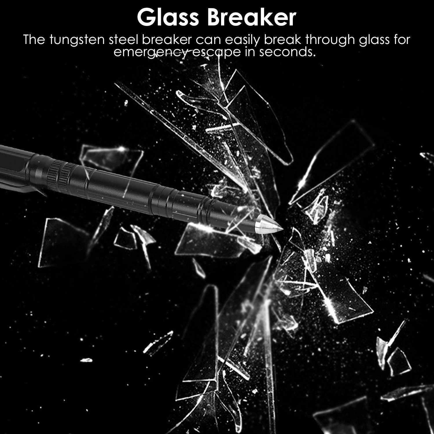 *Robust Aluminum*:Made of aircraft grade aluminum; the housing offers the pen weight for self-defense. The tungsten steel breaker can easily break through barriers or glass for emergency escape.